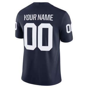 Rep your team in style with this Custom Penn State Nittany Lions Football Navy Game Jersey – All Stitched. Featuring all-stitched name and number, this Penn State Nittany Lions jersey offers a personalized look with team details. Designed for comfort, it has a lightweight fit and breathable mesh panels to keep you cool on game day. Perfect for die-hard fans who want to stand out and show their Penn State pride.