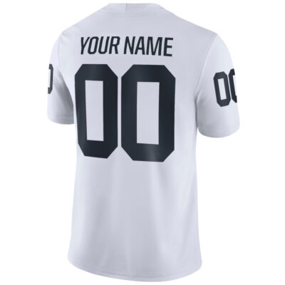 Rep your team in style with this Custom Penn State Nittany Lions Football White Game Jersey – All Stitched. Featuring all-stitched name and number, this Penn State Nittany Lions jersey offers a personalized look with team details. Designed for comfort, it has a lightweight fit and breathable mesh panels to keep you cool on game day. Perfect for die-hard fans who want to stand out and show their Penn State pride.
