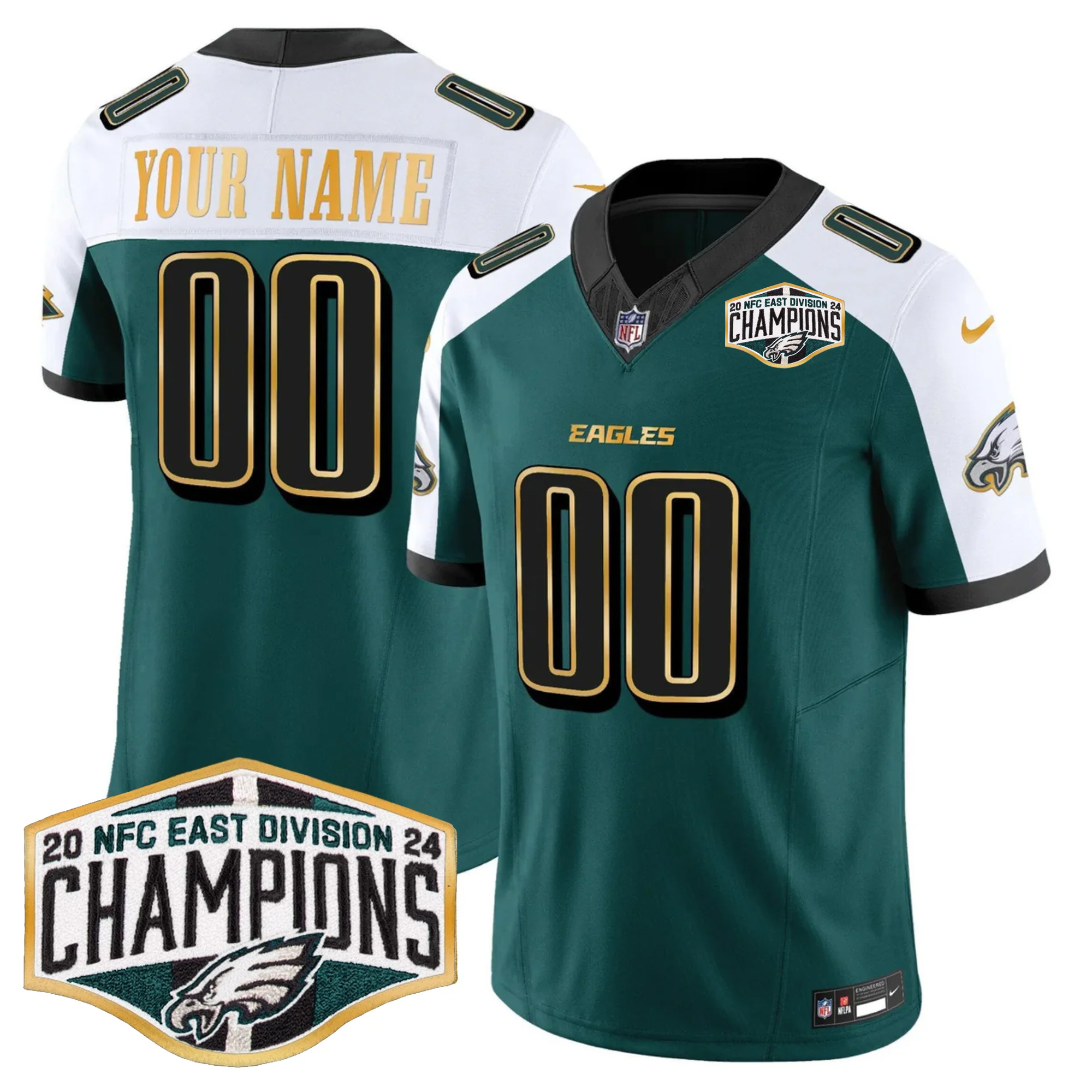 Custom Philadelphia Eagles 2024 NFC East Division Champions Midnight Green Alternate Gold Trim Vapor F.U.S.E Limited Jersey
