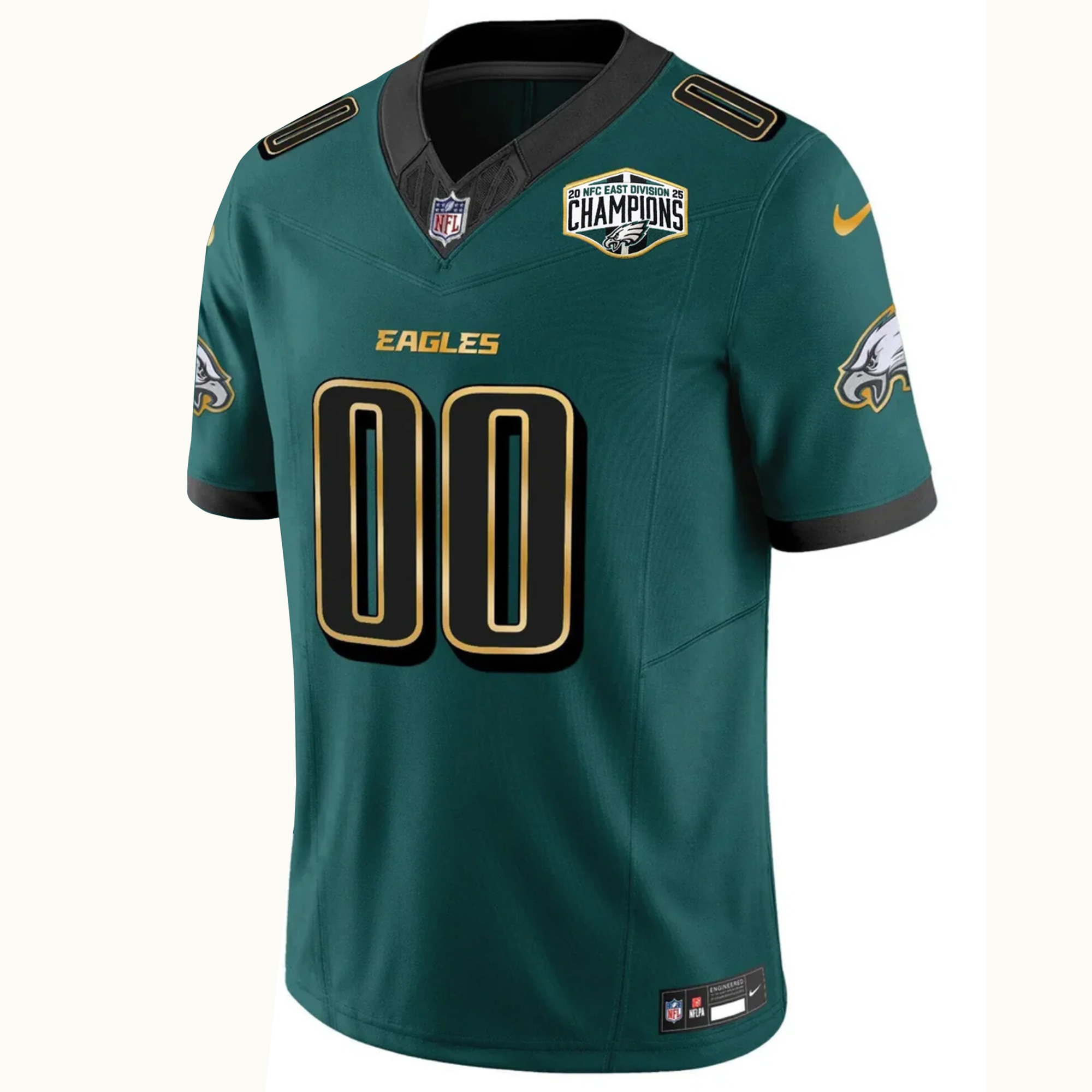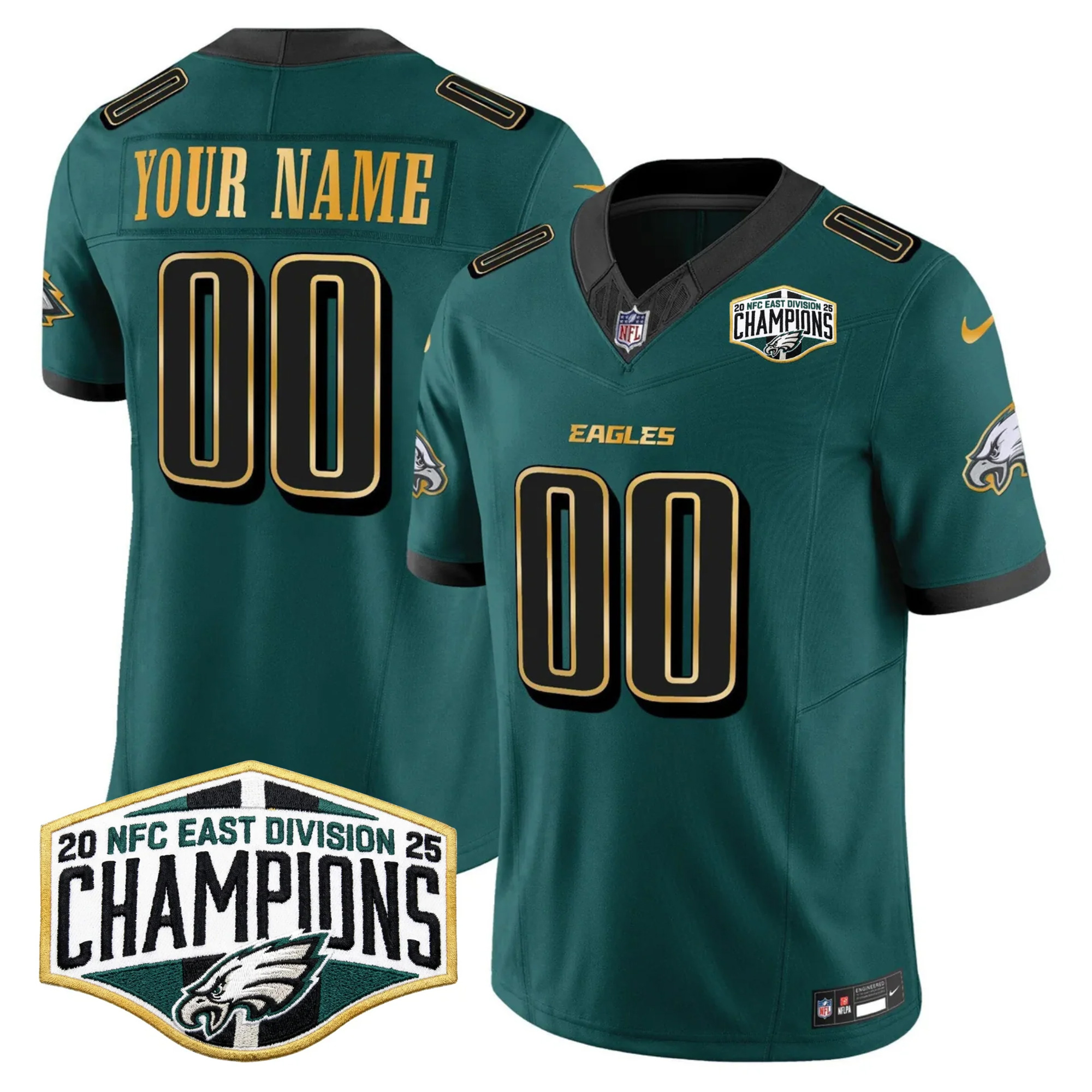Custom Philadelphia Eagles 2025 NFC East Division Champions Midnight Green Gold Trim Vapor F.U.S.E Limited Jersey