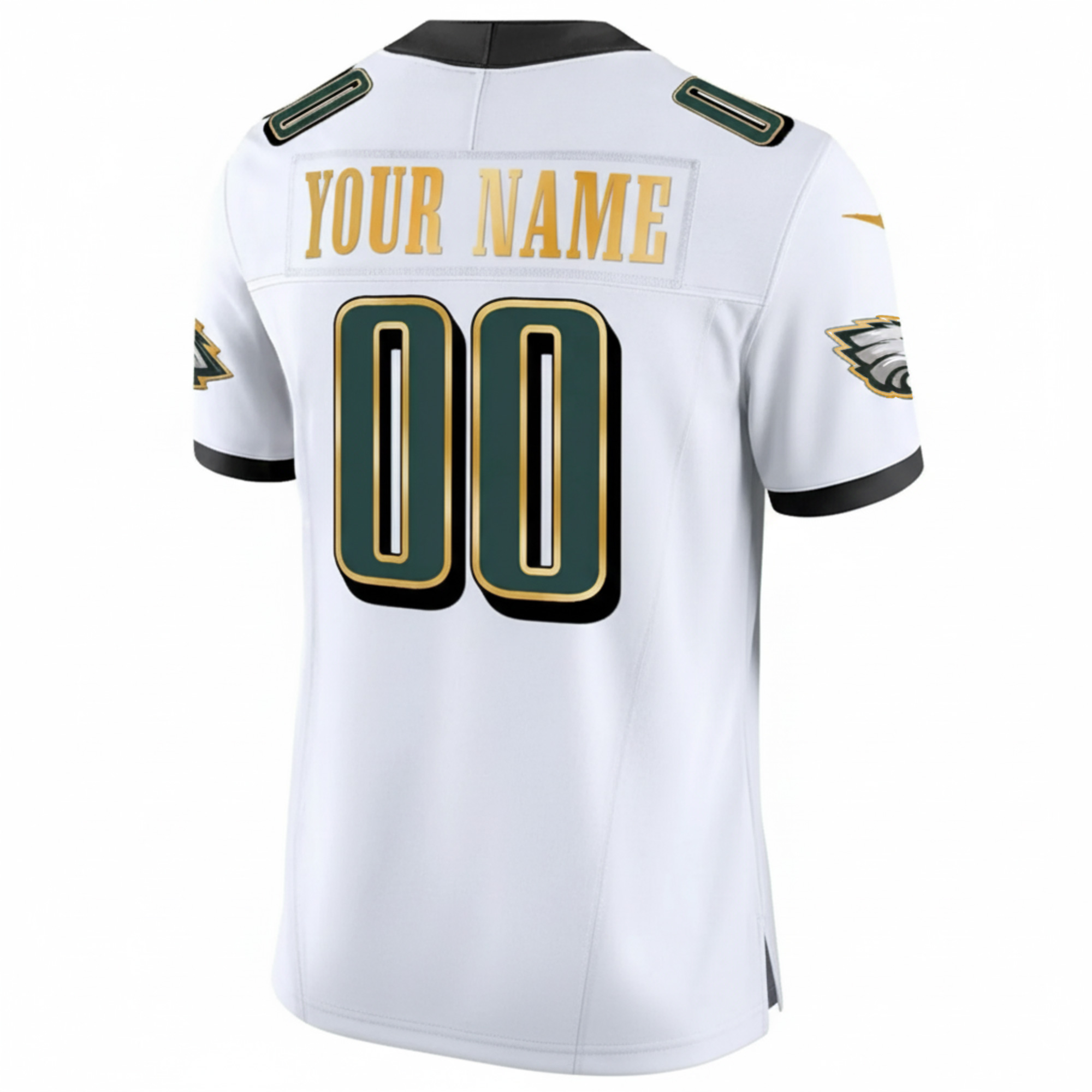 Clean and celebratory, this White Gold Trim 2025 NFC East Division Champions jersey highlights Philadelphia Eagles excellence. Featuring Eagles short name identity and strong state pride, the stitched or embroidered name, number, logo, and division patch add premium depth. Gold trim details bring a refined championship feel to the design. Perfect for game days or collections, this jersey is also available in oversized sizes for a relaxed and stylish fit.