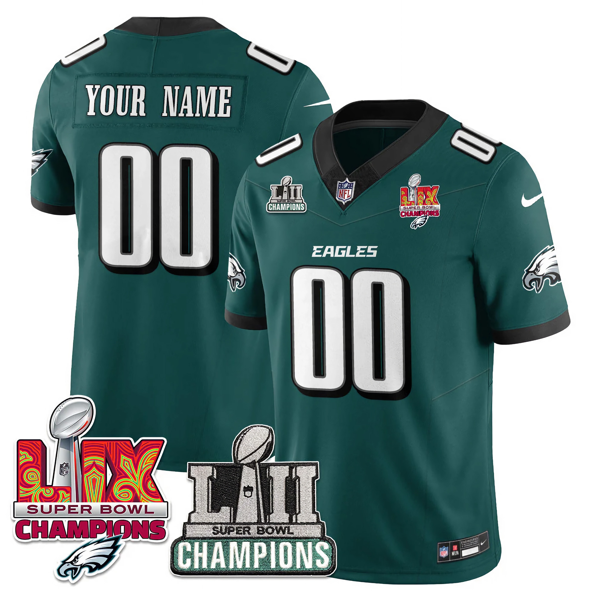 Custom Philadelphia Eagles Super Bowl LII LIX Champions Midnight Green Vapor F.U.S.E Limited Jersey