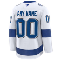 Show your dedication wherever the Bolts play with the Custom Tampa Bay Lightning White Away Premium Jersey – All Stitched. Representing Tampa Bay’s fierce determination on the road, this clean white jersey comes with stitched name, number, logo, and patches that highlight the team’s championship heritage and Florida spirit.