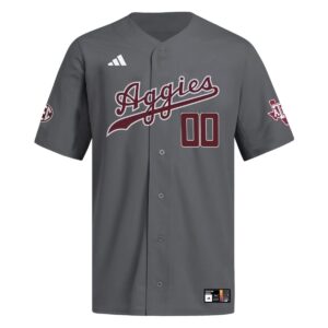 This grey alternate baseball style delivers modern energy for Texas A&M University fans. The Aggies short name stands for resilience and strong Texas state pride. The SEC patch reflects the team’s presence in a powerhouse conference known for intense competition. Fully stitched elements provide durability and bold presentation. A reliable choice for passionate fans, satisfied by thousands of customers.