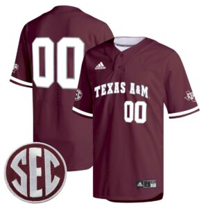 This maroon arch baseball design celebrates Texas A&M University tradition with bold lettering. The Aggies short name embodies unity and proud Texas heritage. The SEC patch highlights the team’s competitive presence since entering the conference in 2012. Fully stitched elements enhance structure and style, perfect for everyday wear or gifting. Satisfied by thousands of customers.