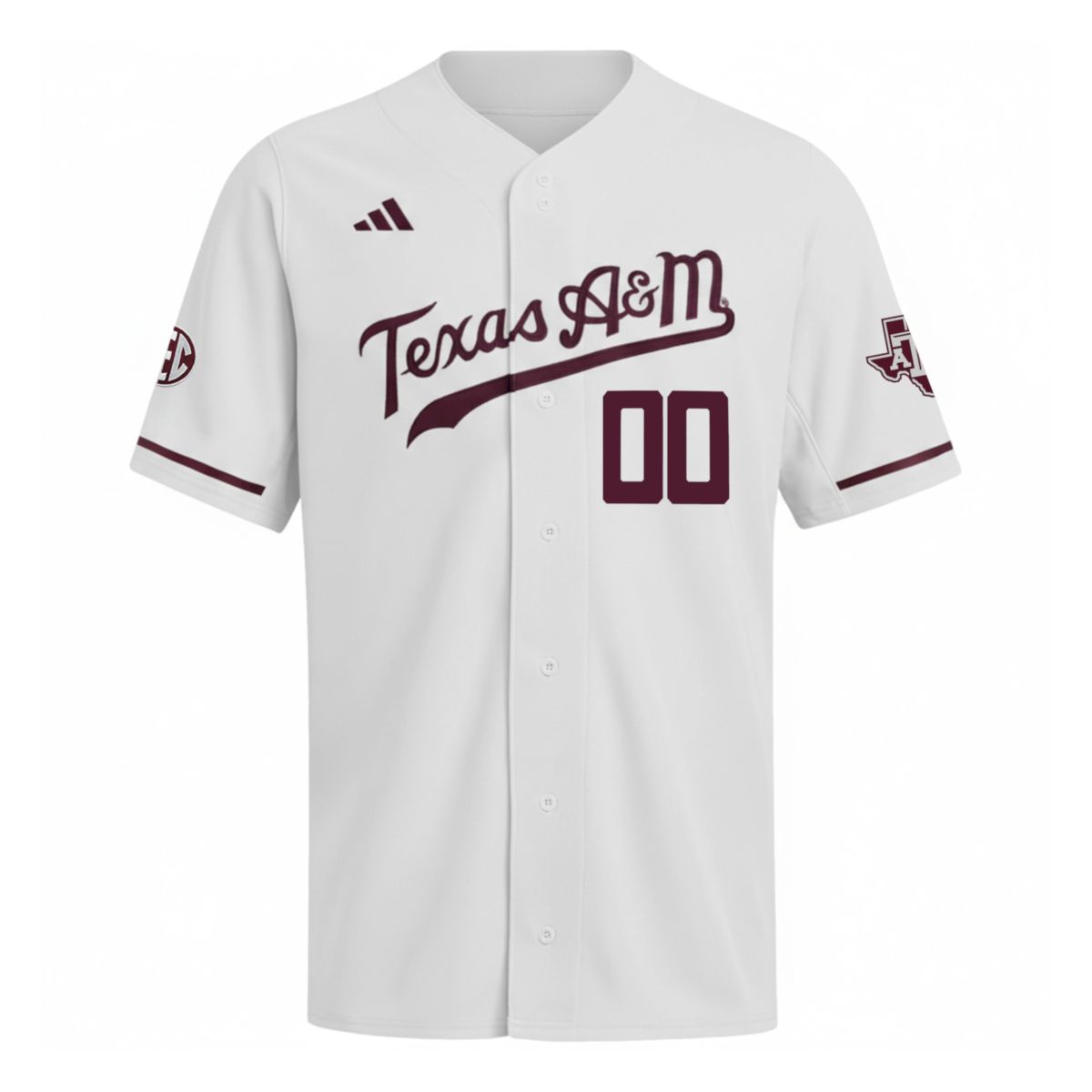 Custom Texas A&M Aggies Baseball White Jersey w/ SEC Patch – All Stitched
