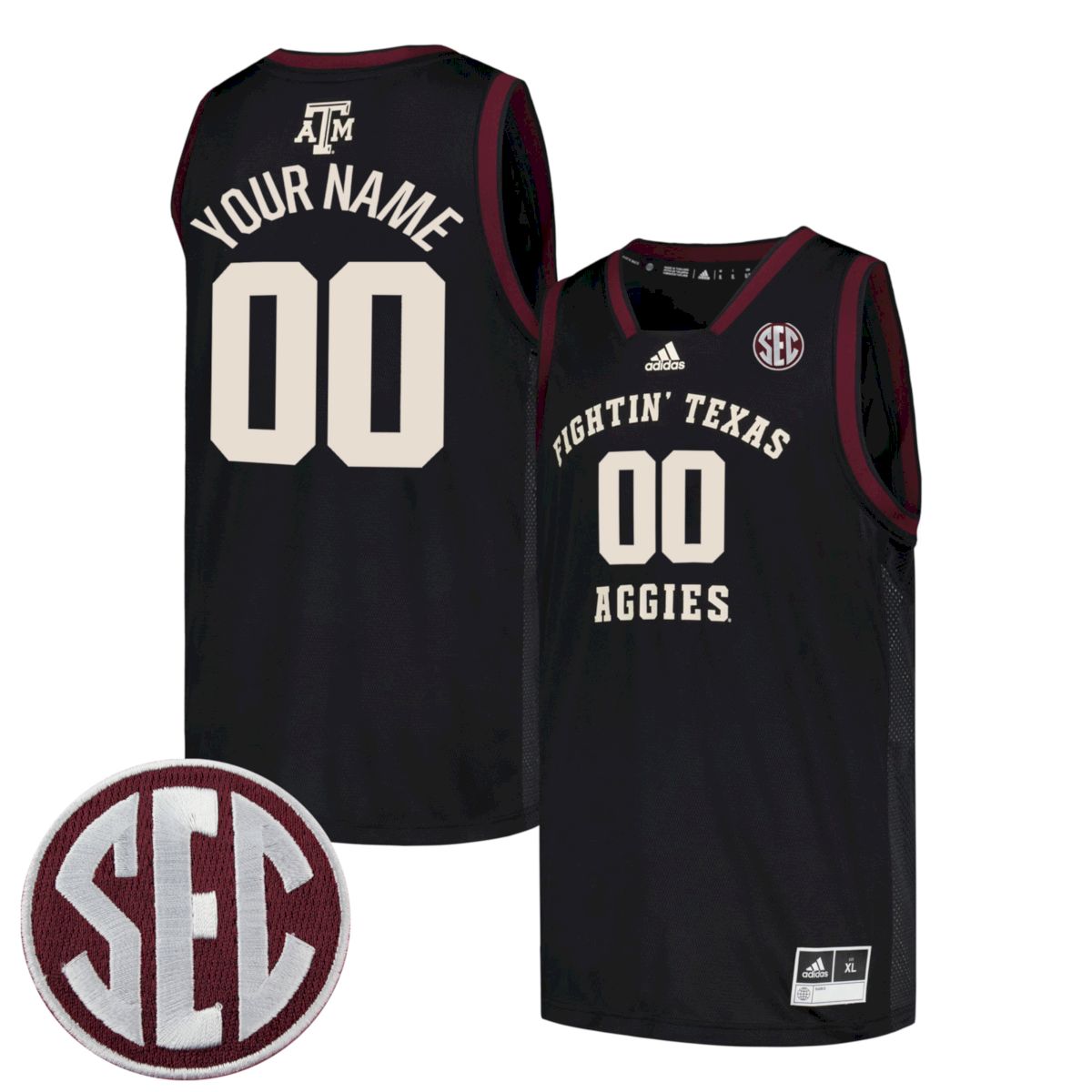 Custom Texas A&M Aggies Basketball 2022/23 Black Away Jersey w/ SEC Patch – All Stitched