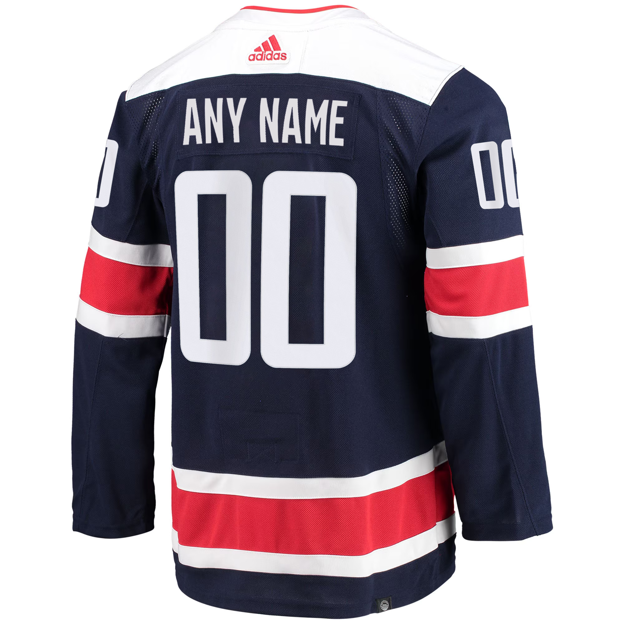 Turn heads in the Washington Capitals Navy Alternate Primegreen Jersey. Inspired by the pride of the nation’s capital, this alternate look combines classic navy tones with bold detailing. Every logo, name, number, and patch is stitched or embroidered for superior craftsmanship. Made from Primegreen recycled materials, it’s a modern tribute to sustainability and the Capitals’ relentless drive. Wear it to show that your Washington pride is timeless, powerful, and eco-conscious.