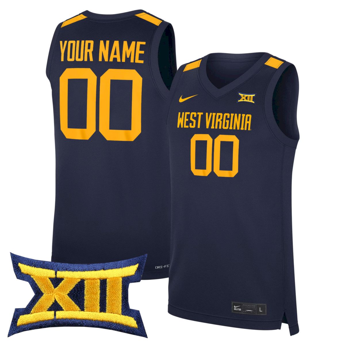 This navy away–style jersey featuring the Big 12 patch highlights West Virginia University’s role in one of college basketball’s toughest conferences. The stitched Big 12 patch represents conference pride, while the navy base reinforces Mountaineer toughness. Detailed stitching throughout ensures durability and a premium look. Ideal for fans who love road-game energy and conference matchups, this jersey blends performance style with WVU tradition and has been satisfied by thousands of customers.