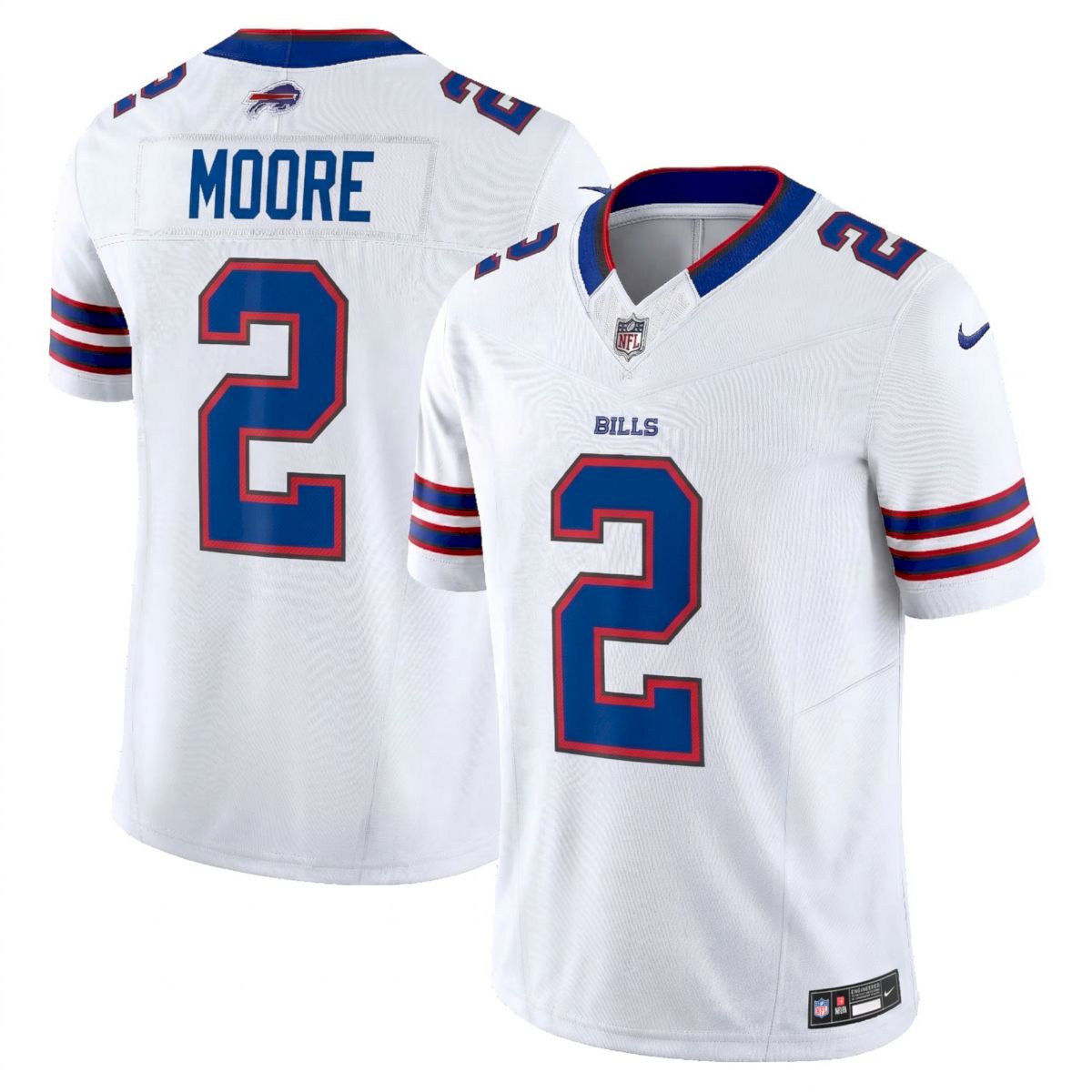 D.J. Moore brings explosive playmaking abilities to the Buffalo roster, helping drive the team toward victory. This clean white away look is a must-have for any dedicated member of the Bills Mafia. Join a community satisfied by thousands of customers who trust our quality. Whether you are buying this for your own love of sports or as a great gift, this jersey delivers style and comfort all season long.