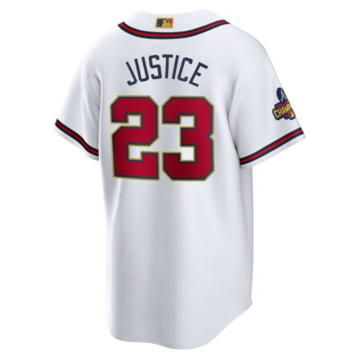 This David Justice Atlanta Braves White 2022 Gold Program Jersey – All Stitched is an essential piece of gear for any Atlanta Braves fan looking to highlight their favorite jersey and player. The David Justice Atlanta Braves White 2022 Gold Program Jersey and team details provide a kickoff-ready look that elevates your excitement for game day. Made with comfort in mind, this Atlanta Braves jersey delivers a standard, lightweight fit and features breathable mesh side panels for added ventilation.