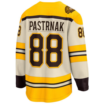 Honor the Boston Bruins legacy with the Cream Alternate 100th Anniversary Jersey. Designed to mark a century of excellence, this jersey features stitched name, number, embroidered logo, and special 100th anniversary patch. The cream color gives it a classic, heritage feel that celebrates Massachusetts hockey pride. A timeless tribute to both David Pastrnak and the city of Boston.