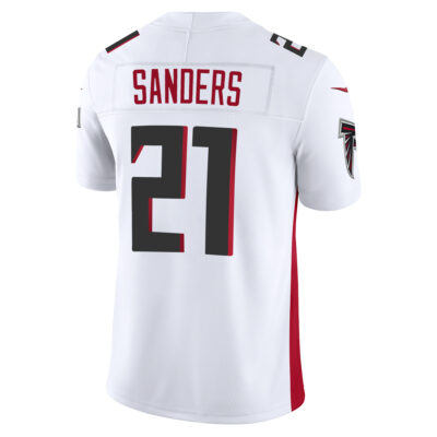 This Deion Sanders Atlanta Falcons White Road Vapor F.U.S.E Limited Jersey – All Stitched is an essential piece of gear for any Atlanta Falcons fan looking to highlight their favorite jersey and player. The Deion Sanders Atlanta Falcons White Road Vapor F.U.S.E Limited Jersey and team details provide a kickoff-ready look that elevates your excitement for game day. Made with comfort in mind, this Deion Sanders Atlanta Falcons jersey delivers a standard, lightweight fit and features breathable mesh side panels for added ventilation.