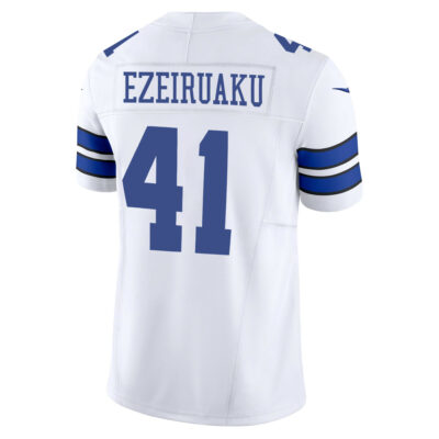 This Donovan Ezeiruaku Dallas Cowboys White Away Vapor F.U.S.E Limited Jersey – All Stitched is an essential piece of gear for any Dallas Cowboys fan looking to highlight their favorite jersey and player. The Donovan Ezeiruaku Dallas Cowboys White Away Vapor F.U.S.E Limited Jersey and team details provide a kickoff-ready look that elevates your excitement for game day. Made with comfort in mind, this Personalized Dallas Cowboys jersey delivers a standard, lightweight fit and features breathable mesh side panels for added ventilation.