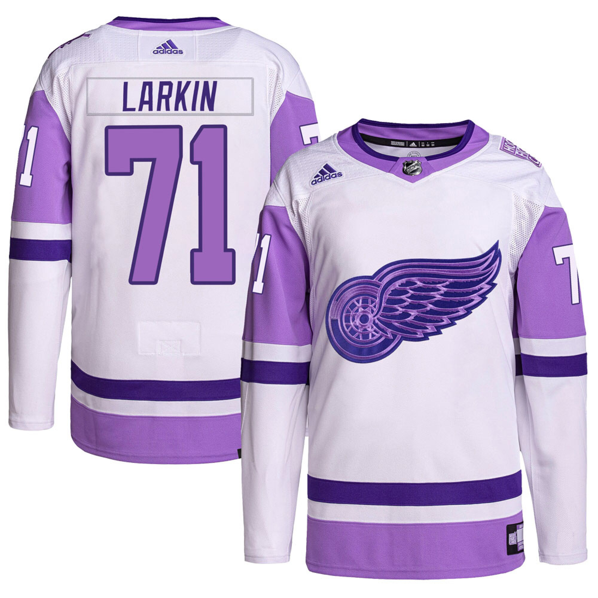 Spread awareness and hope with the Dylan Larkin Detroit Red Wings White Purple Hockey Fights Cancer Primegreen Jersey. Created with sustainable Primegreen materials, this edition merges purpose, performance, and Detroit pride. The white and purple design honors those impacted by cancer while supporting the broader Hockey Fights Cancer initiative. Featuring stitched name and number, embroidered team logo, and symbolic patchwork, it’s built for comfort and meaning. Dylan Larkin’s name adds a touch of inspiration and leadership, reminding fans that Hockeytown stands together in strength. Wear it proudly to games or as a tribute to loved ones—the perfect blend of heart, heritage, and hope. Every detail echoes Michigan’s resilience and the power of unity through sport.
