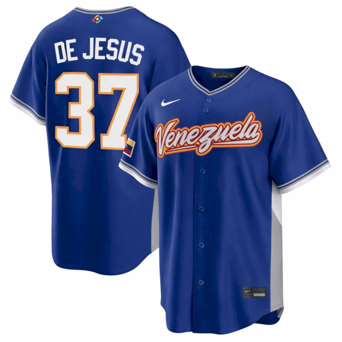 Show your support for the national team with this Enmanuel De Jesus Venezuela Baseball 2026 World Baseball Classic Royal Road Jersey. Featuring premium all-stitched detailing, this jersey captures the vibrant spirit of international competition. Enmanuel De Jesus is a standout pitcher known for his dedication, representing Venezuela with immense pride on the global stage. This royal jersey is the ultimate way to showcase your state pride and passion for the game during the tournament.