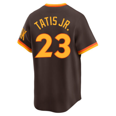 This Fernando Tatis Jr San Diego Padres Brown 1969-84 Cooperstown Limited Jersey – All Stitched is an essential piece of gear for any San Diego Padres fan looking to highlight their favorite jersey and player. The Fernando Tatis Jr San Diego Padres Brown 1969-84 Cooperstown Limited Jersey and team details provide a kickoff-ready look that elevates your excitement for game day. Made with comfort in mind, this Fernando Tatis Jr San Diego Padres jersey delivers a standard, lightweight fit and features breathable mesh side panels for added ventilation.