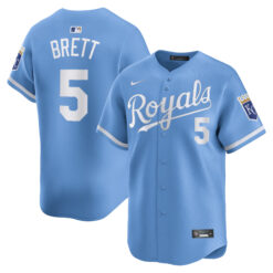 This George Brett Kansas City Royals Light Blue Alternate Limited Jersey – All Stitched is an essential piece of gear for any Kansas City Royals fan looking to highlight their favorite jersey and player. The George Brett Kansas City Royals Light Blue Alternate Limited Jersey and team details provide a kickoff-ready look that elevates your excitement for game day. Made with comfort in mind, this Kansas City Royals jersey delivers a standard, lightweight fit and features breathable mesh side panels for added ventilation.