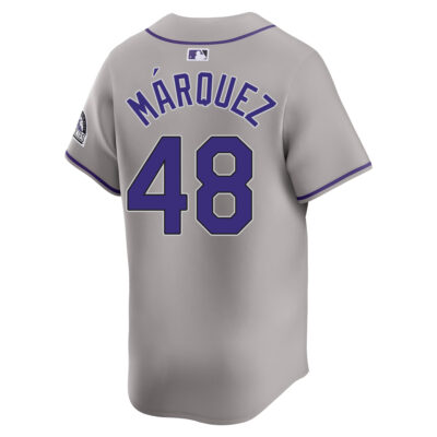 This Germán Márquez Colorado Rockies Grey Road Limited Jersey – All Stitched is an essential piece of gear for any Colorado Rockies fan looking to highlight their favorite jersey and player. The Germán Márquez Colorado Rockies Grey Road Limited Jersey and team details provide a kickoff-ready look that elevates your excitement for game day. Made with comfort in mind, this Colorado Rockies jersey delivers a standard, lightweight fit and features breathable mesh side panels for added ventilation.