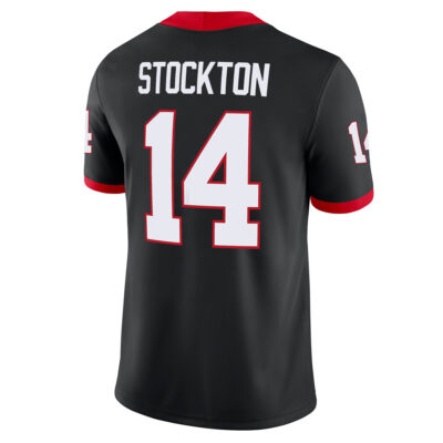 Show off your Georgia Bulldogs loyalty with this Gunner Stockton Black Alternate Game Jersey featuring a stitched SEC patch. The dark alternate palette adds a fresh edge to the classic UGA short-name identity, while the Georgia pride shines through every detail. The stitched or embroidered name, number, team logo, and patch create a premium finish built for long-lasting wear. This jersey is perfect for fans who want a bold, modern way to support Gunner Stockton and the Dawgs on game day.