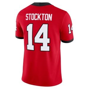 Bring game-day intensity to life with this Gunner Stockton Georgia Bulldogs Red Home Game Jersey. Designed for loyal supporters of UGA and Georgia pride, this bright red look embodies everything Dawgs fans love. All details—name, number, patches, and logos—are stitched or embroidered to ensure a rich, durable finish that stands up to every cheer. Whether you’re shouting “Go Dawgs” at Sanford Stadium or watching from home, this jersey captures the classic Georgia short-name energy with a game-ready feel that highlights Gunner Stockton’s presence in the lineup.