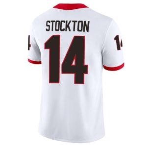 Gunner Stockton Georgia Bulldogs Football White Away Jersey w/ SEC Patch – All Stitched