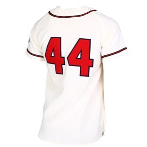 This Hank Aaron Atlanta Braves Cream Throwback Jersey – All Stitched is an essential piece of gear for any Atlanta Braves fan looking to highlight their favorite jersey and player. The Hank Aaron Atlanta Braves Cream Throwback Jersey and team details provide a kickoff-ready look that elevates your excitement for game day. Made with comfort in mind, this Atlanta Braves jersey delivers a standard, lightweight fit and features breathable mesh side panels for added ventilation.