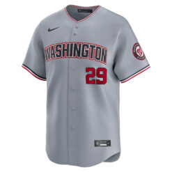 This James Wood Washington Nationals Grey Road Limited Jersey – All Stitched is an essential piece of gear for any James Wood Washington Nationals fan looking to highlight their favorite jersey and player. The James Wood Washington Nationals Grey Road Limited Jersey and team details provide a kickoff-ready look that elevates your excitement for game day. Made with comfort in mind, this James Wood Washington Nationals jersey delivers a standard, lightweight fit and features breathable mesh side panels for added ventilation.
