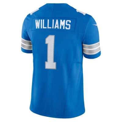 This Jameson Williams Detroit Lions Blue Home Vapor F.U.S.E Limited Jersey – All Stitched is an essential piece of gear for any Detroit Lions fan looking to highlight their favorite jersey and player. The Jameson Williams Detroit Lions Blue Home Vapor F.U.S.E Limited Jersey and team details provide a kickoff-ready look that elevates your excitement for game day. Made with comfort in mind, this Jameson Williams Detroit Lions jersey delivers a standard, lightweight fit and features breathable mesh side panels for added ventilation.