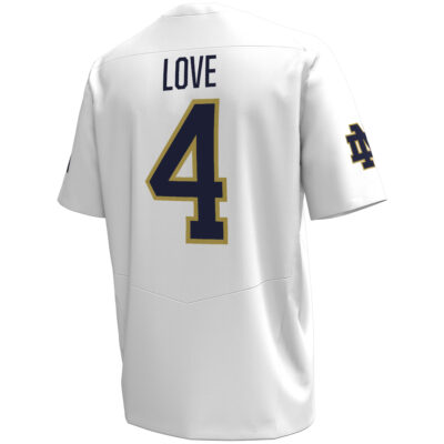Show your support for Jeremiyah Love, one of ND’s most dynamic young offensive talents, with this crisp White jersey. The bright base pops under stadium lights at Notre Dame Stadium, while stitched numbers and name add sharp definition. A clean yet powerful look for any Fighting Irish supporter.