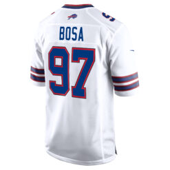 Joey Bosa Buffalo Bills White Away Game Jersey – All Stitched captures the spirit of Florida football pride with the Bucs’ iconic red home colorway. Representing the University of Michigan alum who became an NFL legend, Brady’s number is stitched across the chest, back, and shoulders, with his nameplate embroidered for lasting detail. The Buffalo Bills logos and patches are fully stitched, showcasing team loyalty and state pride with every element of this bold home design.