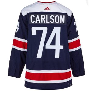 Honor the Capitals’ tradition with a modern edge in the John Carlson Washington Capitals Navy 2nd Alternate Primegreen Jersey. This deep navy jersey captures the sophisticated spirit of Washington, D.C., while being crafted from sustainable Primegreen materials. All names, numbers, logos, and patches are stitched or embroidered for a superior look and feel. Whether on game night or casual days, this jersey proudly displays your Capitals loyalty and eco-conscious values.
