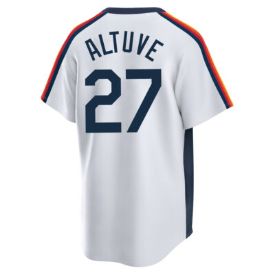 This Jose Altuve Houston Astros White Cooperstown Collection Jersey – All Stitched is an essential piece of gear for any Jose Altuve Houston Astros fan looking to highlight their favorite jersey and player. The Jose Altuve Houston Astros White Cooperstown Collection Jersey and team details provide a kickoff-ready look that elevates your excitement for game day. Made with comfort in mind, this Jose Altuve Houston Astros jersey delivers a standard, lightweight fit and features breathable mesh side panels for added ventilation.