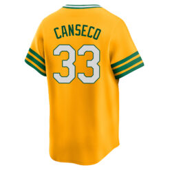 This Jose Canseco Oakland Athletics Gold Cooperstown Collection Jersey – All Stitched is an essential piece of gear for any Oakland Athletics fan looking to highlight their favorite jersey and player. The Jose Canseco Oakland Athletics Gold Cooperstown Collection Jersey and team details provide a kickoff-ready look that elevates your excitement for game day. Made with comfort in mind, this Oakland Athletics jersey delivers a standard, lightweight fit and features breathable mesh side panels for added ventilation.