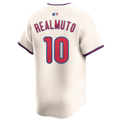 This JT Realmuto Philadelphia Phillies Cream Alternate Limited Jersey – All Stitched is an essential piece of gear for any Philadelphia Phillies fan looking to highlight their favorite jersey and player. The JT Realmuto Philadelphia Phillies Cream Alternate Limited Jersey and team details provide a kickoff-ready look that elevates your excitement for game day. Made with comfort in mind, this Philadelphia Phillies jersey delivers a standard, lightweight fit and features breathable mesh side panels for added ventilation.