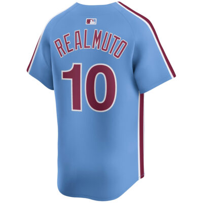 This JT Realmuto Philadelphia Phillies Light Blue Alternate Limited Jersey – All Stitched is an essential piece of gear for any Philadelphia Phillies fan looking to highlight their favorite jersey and player. The JT Realmuto Philadelphia Phillies Light Blue Alternate Limited Jersey and team details provide a kickoff-ready look that elevates your excitement for game day. Made with comfort in mind, this Philadelphia Phillies jersey delivers a standard, lightweight fit and features breathable mesh side panels for added ventilation.