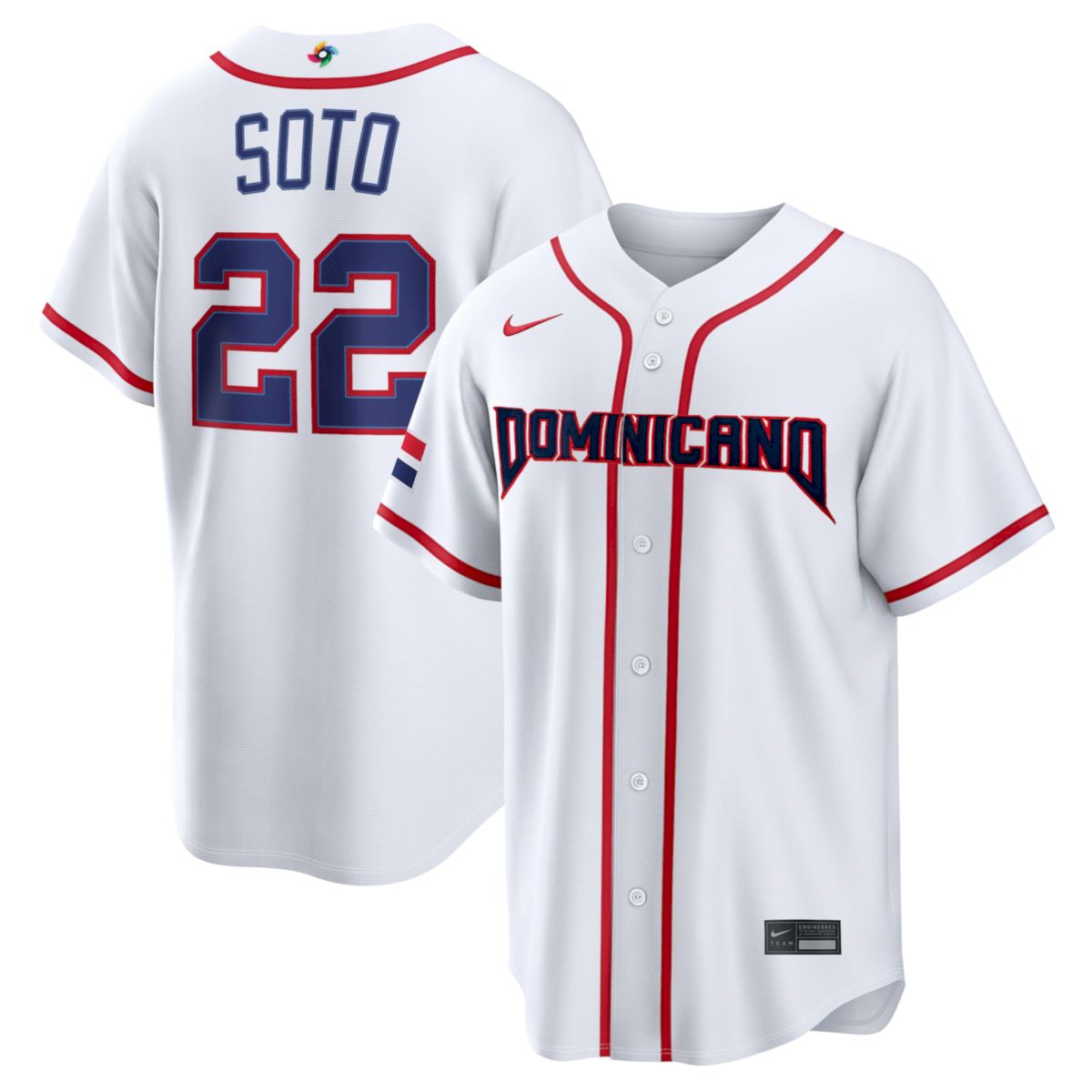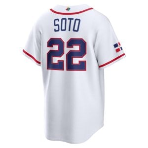 The Dominican Republic national team carries a proud baseball tradition, and fans across the Caribbean passionately support their stars on the world stage. This white heritage look reflects that history and national pride.