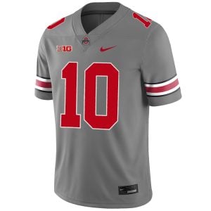 Honor OSU tradition with this Grey Game Jersey showcasing Julian Sayin and the Ohio State Buckeyes legacy. The signature grey represents deep Buckeye roots, while the stitched name, number, logos, and embroidered B1G patch elevate the jersey with rich detail. Designed for fans who take pride in Ohio toughness and OSU excellence, this piece blends comfort with timeless Buckeyes character. It’s a perfect choice for showing state pride and supporting the next generation of OSU football talent in fully stitched style.
