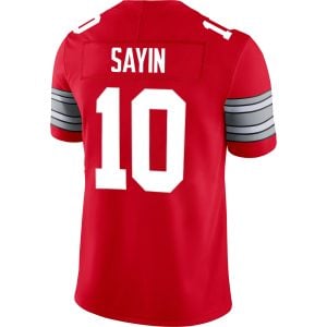 Celebrate the energy of The Ohio State University with this Scarlet Alternate Game Jersey for Julian Sayin. Featuring fully stitched name, number, OSU logos, and a detailed B1G patch, this jersey combines traditional Buckeyes pride with alternate flair. The bold scarlet tone reflects Ohio passion, while the stitched elements add depth and durability. Ideal for fans who love switching up their game-day style, this jersey captures the toughness, heritage, and confidence of OSU football with standout stitched craftsmanship.