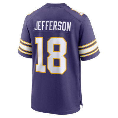 Step into history with the Justin Jefferson Minnesota Vikings Purple Classic Game Jersey – All Stitched. Celebrating tradition, this classic edition highlights the rich legacy of Minnesota football. Every detail — stitched name, embroidered logos, and classic patches — ties the present-day star Jefferson to the proud past of the Vikings franchise.