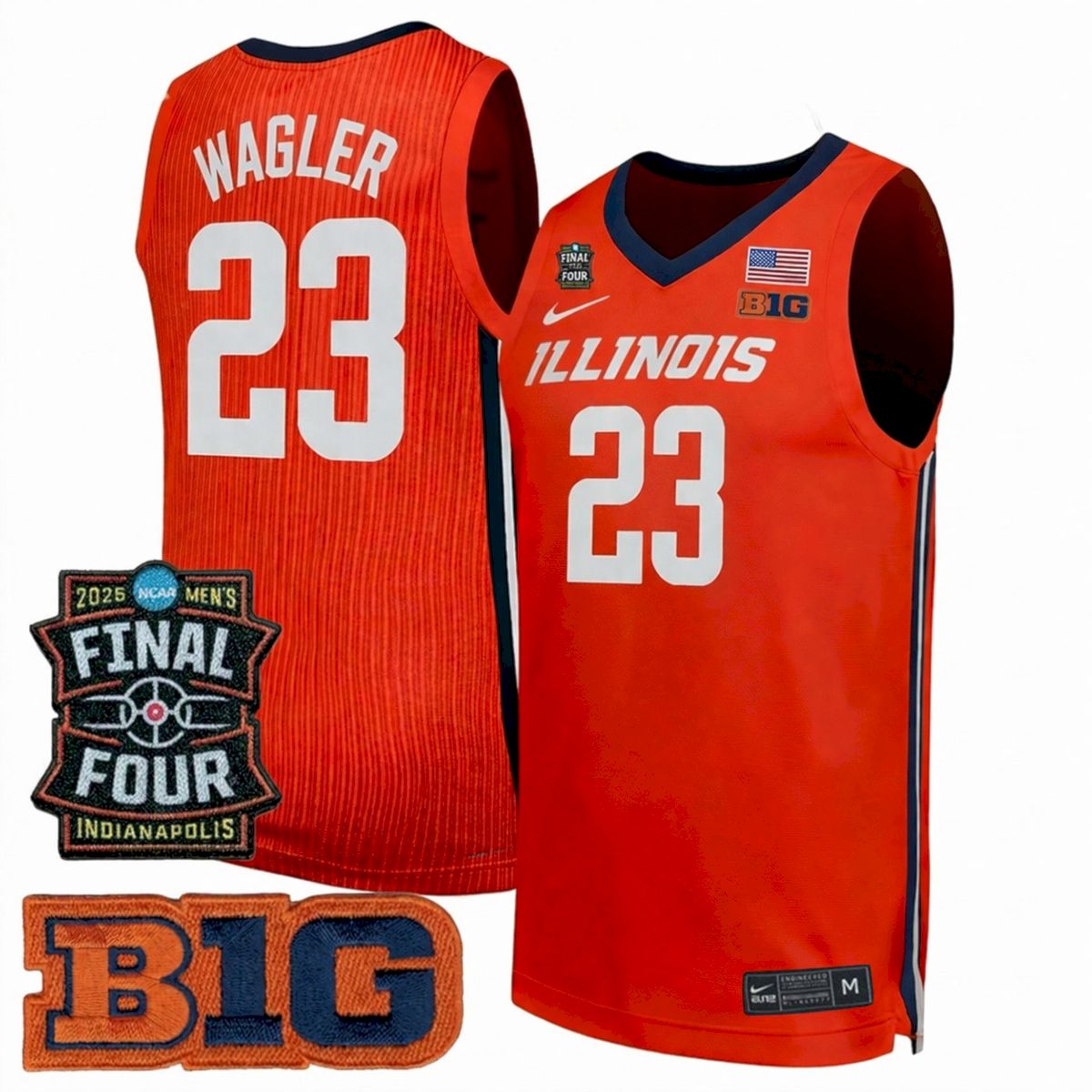 Show your Illinois Fighting Illini pride with this Keaton Wagler Illinois Fighting Illini Basketball 2026 Final Four Orange Jersey. This all-stitched jersey celebrates the future of the Illini as they aim for the big stage. Keaton Wagler is a standout addition to the roster, known for his incredible shooting ability that energizes fans at the State Farm Center. Whether you are cheering in Champaign or from home, this vibrant orange jersey is the perfect way to show your dedication. Satisfied by thousands of customers, our quality apparel ensures you look great while representing Illinois state pride. It makes a great gift for any fan or a perfect purchase for your own love of sports.