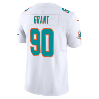 This Kenneth Grant Miami Dolphins White Away Vapor F.U.S.E Limited Jersey – All Stitched is an essential piece of gear for any Miami Dolphins fan looking to highlight their favorite jersey and player. The Kenneth Grant Miami Dolphins White Away Vapor F.U.S.E Limited Jersey and team details provide a kickoff-ready look that elevates your excitement for game day. Made with comfort in mind, this Personalized Miami Dolphins jersey delivers a standard, lightweight fit and features breathable mesh side panels for added ventilation.