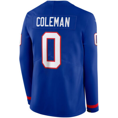 Show off Buffalo pride with this Buffalo Bills Royal Therma Long Sleeve Jersey featuring Keon Coleman. The striking royal color represents the heart of New York football, while stitched name and number and an embroidered Bills logo deliver durable, standout detail. Warm Therma fabric makes it ideal for dedicated fans in any weather.