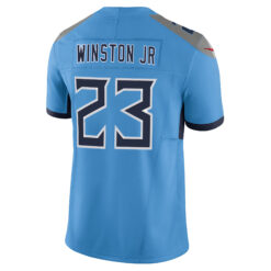 This Kevin Winston Jr Tennessee Titans Light Blue Home Vapor F.U.S.E Limited Jersey – All Stitched is an essential piece of gear for any Tennessee Titans fan looking to highlight their favorite jersey and player. The Kevin Winston Jr Tennessee Titans Light Blue Home Vapor F.U.S.E Limited Jersey and team details provide a kickoff-ready look that elevates your excitement for game day. Made with comfort in mind, this Kevin Winston Jr Tennessee Titans jersey delivers a standard, lightweight fit and features breathable mesh side panels for added ventilation.