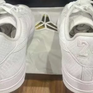 Kobe Bryant‘s legacy goes on with the Swoosh as fans are given a first look at an upcoming Nike Air Force 1 Low release. The classic low-top silhouette receives the Mamba treatment in “Triple White,” giving a clean and crisp look to the everyday sneaker. The shoe is dressed from head-to-toe white and is constructed out of a premium snakeskin-textured leather upper. Continuing to pay tribute to the late basketball legend, his jersey numbers 8 and 24 are stitched in white thread at the heel. The reveal comes after a pair of AF1 Lows appeared in “Court Purple”. Adding to the details is the sublte Kobe Sheath logo stamped on the lateral heels to give it one more nod to the Mamba Mentality. Look out for the pair arriving in the coming months.
