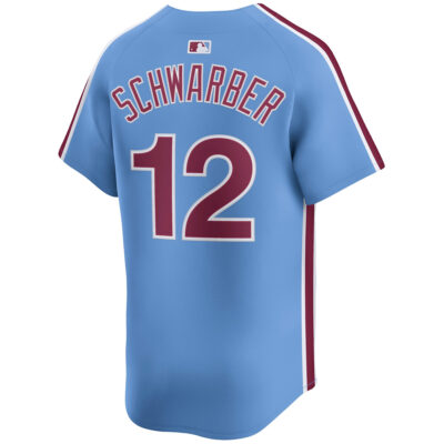 This Kyle Schwarber Philadelphia Phillies Light Blue Alternate Limited Jersey – All Stitched is an essential piece of gear for any Philadelphia Phillies fan looking to highlight their favorite jersey and player. The Kyle Schwarber Philadelphia Phillies Light Blue Alternate Limited Jersey and team details provide a kickoff-ready look that elevates your excitement for game day. Made with comfort in mind, this Philadelphia Phillies jersey delivers a standard, lightweight fit and features breathable mesh side panels for added ventilation.