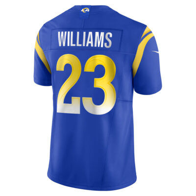 This Kyren Williams Los Angeles Rams Royal Blue Home Vapor F.U.S.E Limited Jersey – All Stitched is an essential piece of gear for any Los Angeles Rams fan looking to highlight their favorite jersey and player. The Kyren Williams Los Angeles Rams Royal Blue Home Vapor F.U.S.E Limited Jersey and team details provide a kickoff-ready look that elevates your excitement for game day. Made with comfort in mind, this Kyren Williams Los Angeles Rams jersey delivers a standard, lightweight fit and features breathable mesh side panels for added ventilation.