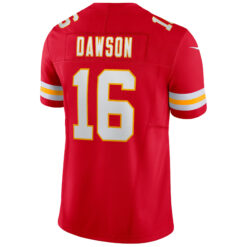 A Vapor F.U.S.E Limited edition honoring a Chiefs legend, this red home jersey for Len Dawson is designed with a “standard fit,” Dri-FIT fabric, heat-transferred twill details, and chainmaille mesh grill collar. Stitched patches and embroidered logos make it an elite tribute to Missouri football history.