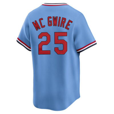This Mark McGwire St. Louis Cardinals Light Blue Cooperstown Collection Jersey – All Stitched is an essential piece of gear for any St. Louis Cardinals fan looking to highlight their favorite jersey and player. The Mark McGwire St. Louis Cardinals Light Blue Cooperstown Collection Jersey and team details provide a kickoff-ready look that elevates your excitement for game day. Made with comfort in mind, this St. Louis Cardinals jersey delivers a standard, lightweight fit and features breathable mesh side panels for added ventilation.