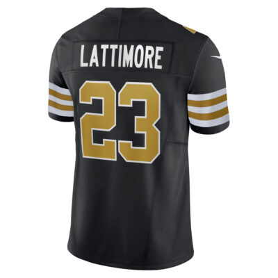 This Marshon Lattimore New Orleans Saints Black Alternate Vapor F.U.S.E Limited Jersey – All Stitched is an essential piece of gear for any New Orleans Saints fan looking to highlight their favorite jersey and player. The Marshon Lattimore New Orleans Saints Black Alternate Vapor F.U.S.E Limited Jersey and team details provide a kickoff-ready look that elevates your excitement for game day. Made with comfort in mind, this Marshon Lattimore New Orleans Saints jersey delivers a standard, lightweight fit and features breathable mesh side panels for added ventilation.